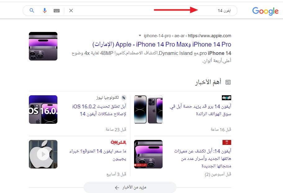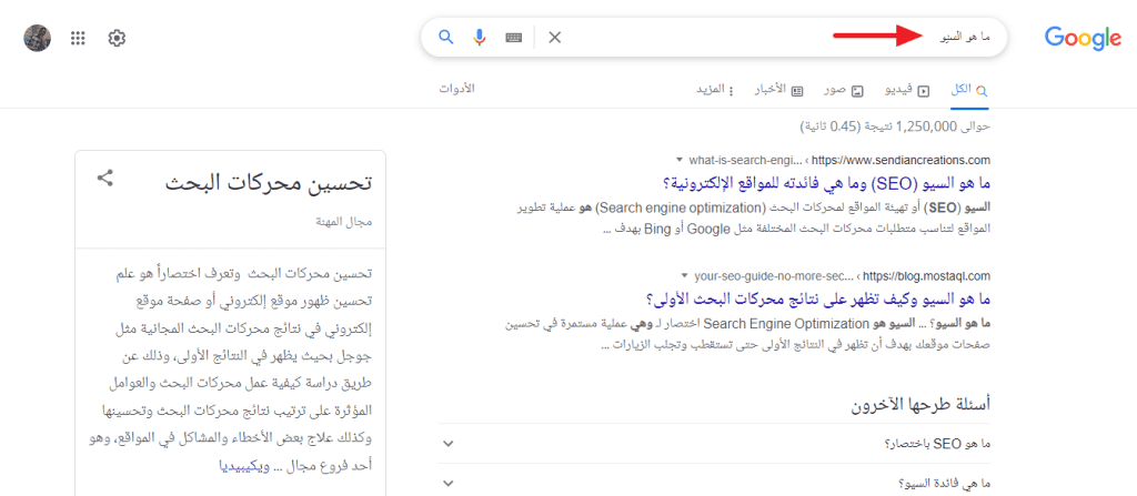 وكمثال عملي على استخدام أحد الكلمات المفتاحية في محرك البحث جوجل. هي “شركة تسويق الكتروني” فتظهر لن مجموعة من النتائج في محركات البحث والمرتبة على حسب مجموعة من العوامل التي يحددها جوجل: